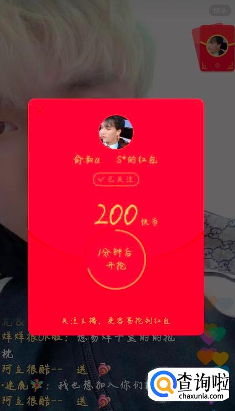 开抢时间到了之后就可以抢红包了,抢到的几率是由主播发的快币数目以及直播间抢红包的人数所决定的,能不能抢到就看你的运气了。