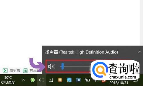 最直接的调节方法就是点击桌面右下角的扬声器小喇叭图标,然后通过通过滚动条左右滑动调节音量大小;