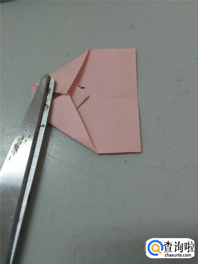 把左上角和左下角分别往中间折,露出下面的一个小角来。