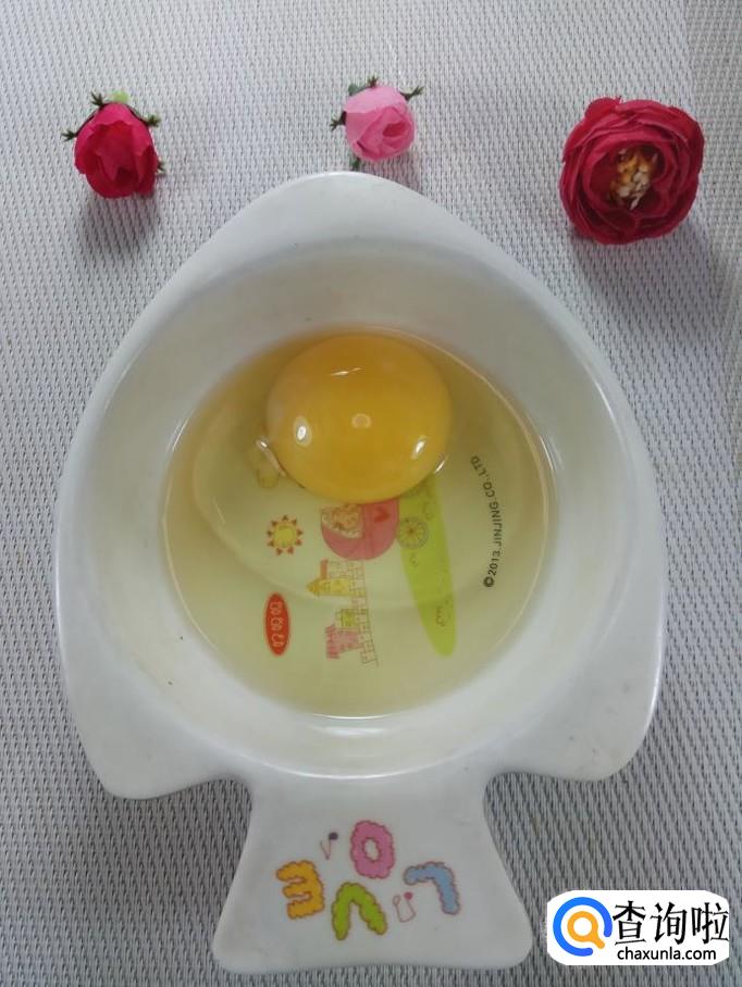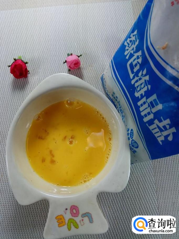 碗中打入一个鸡蛋,加入适量食盐,打散备用。