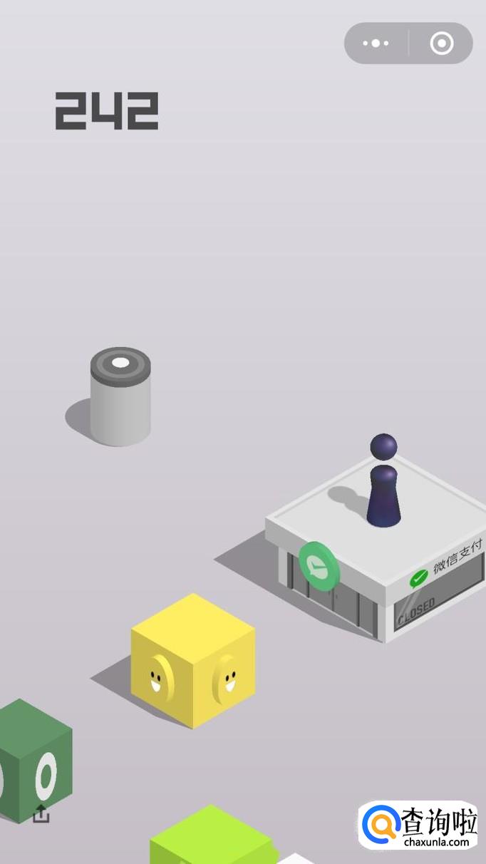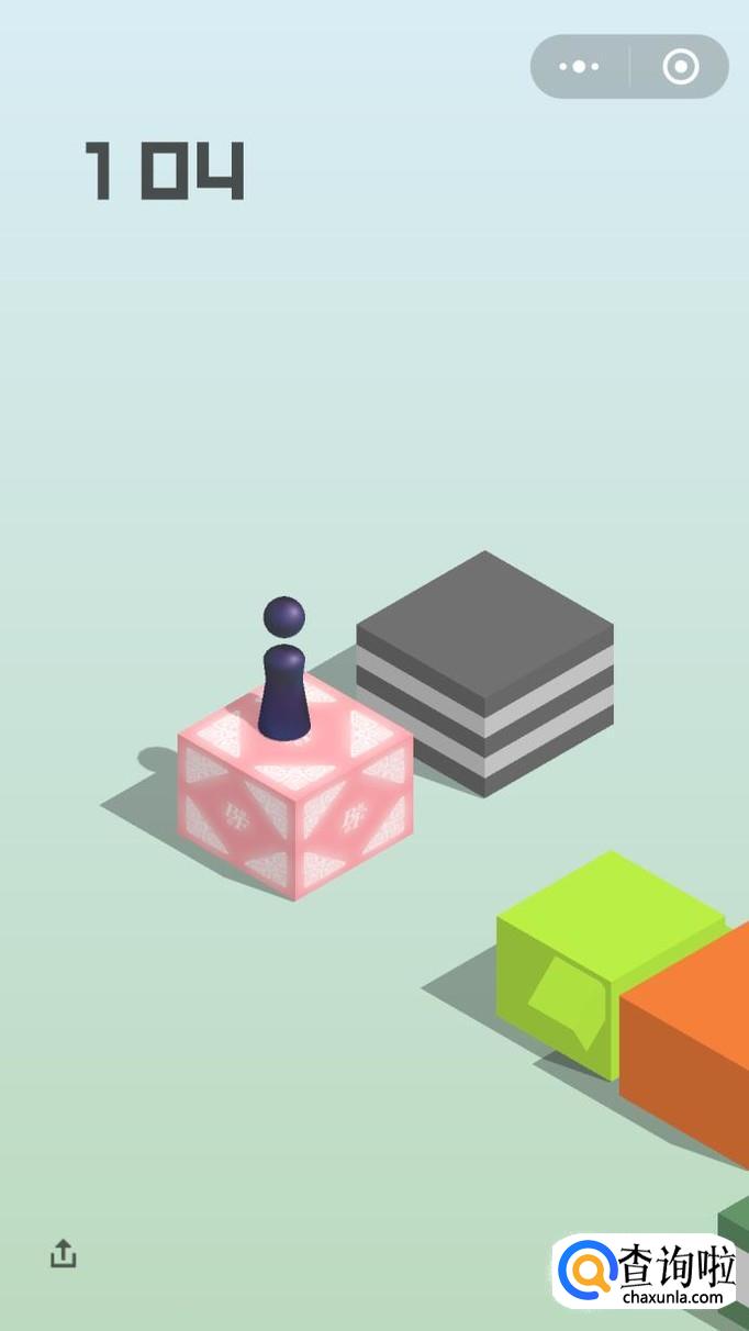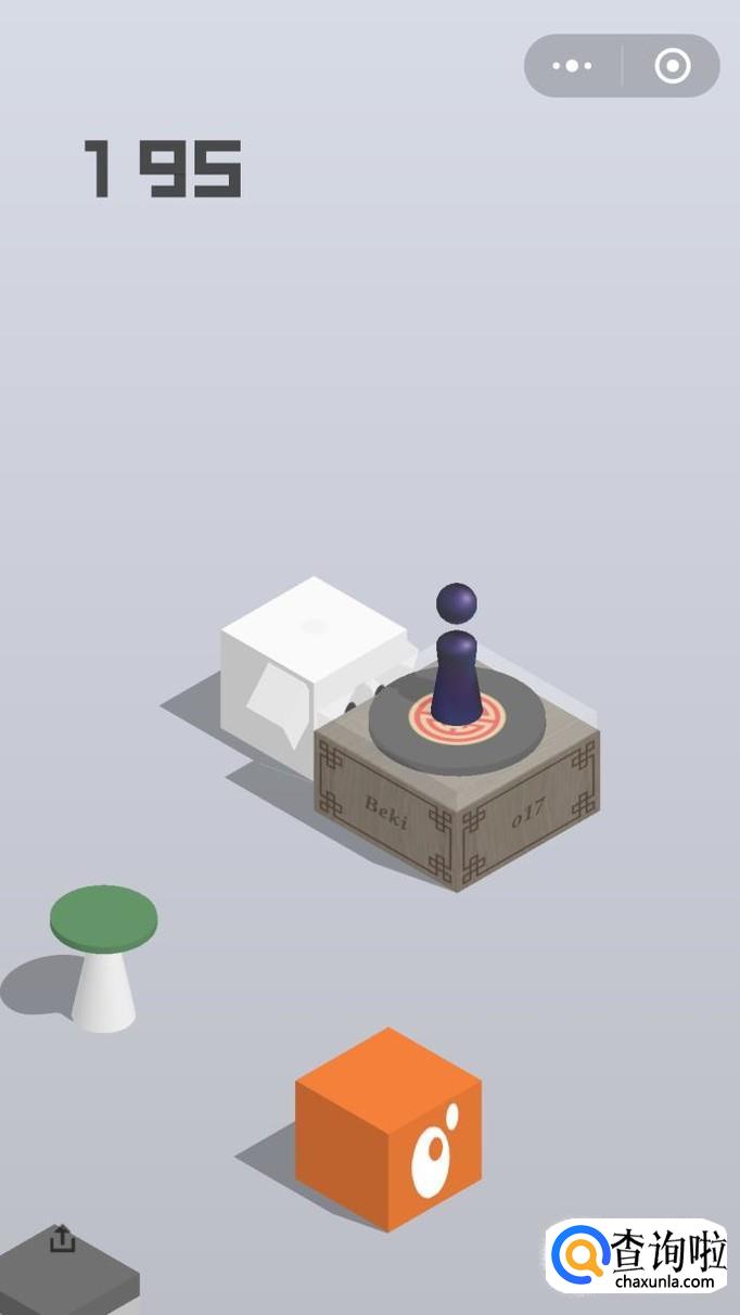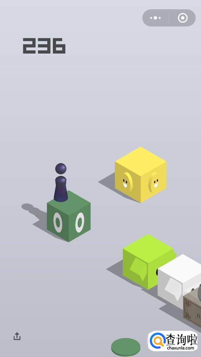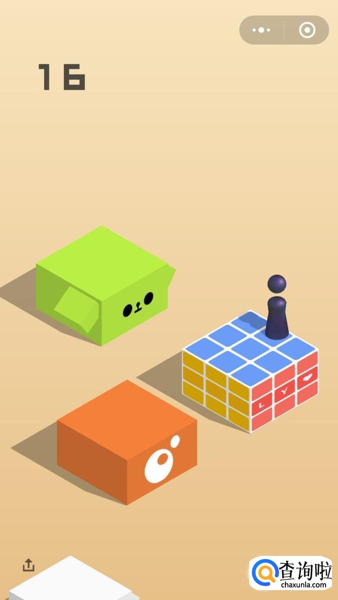 在我们我跳一跳的时候,如果碰到了图中的这种魔方,就让小人在魔方上面停一会儿,分数会在原基础上加十。