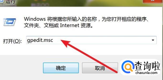 然后输入命令‘ gpedit.msc’,点击确定按键。