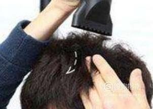 洗完头后用干毛巾擦拭一遍,擦去多余的水分,用吹风机从头顶向下吹,吹至七成干。