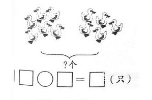 给孩子讲题时,家长一定要先读题,并给孩子说出这一题应该怎么理解。比如说下图的看图列式:第一张图是8朵花加上篮子里的9朵花一共是多少朵,这一题只是加法,比较好理解;第二个图是问一共有多少只鸭子,就是3+3+4=10只,也比较好理解。