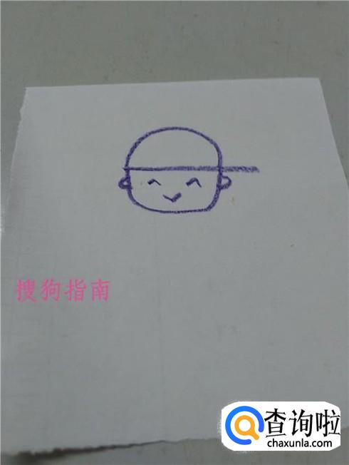在帽子下面画一个U,表示男孩的脸。