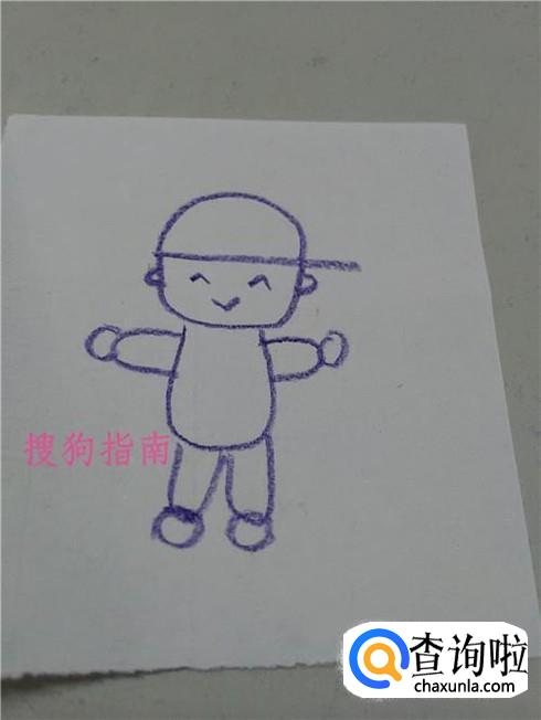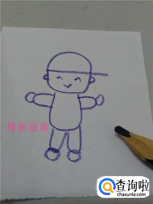 在胳膊和腿的末端各画一个O,表示手和脚,帽子男孩儿就画完了。