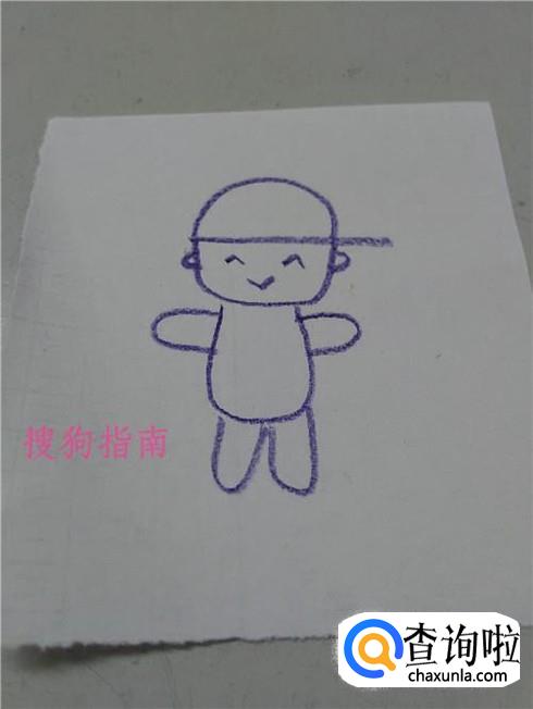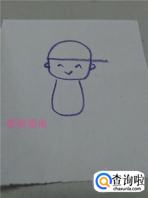 在男孩头部下面画一个大大的U,表示上身。