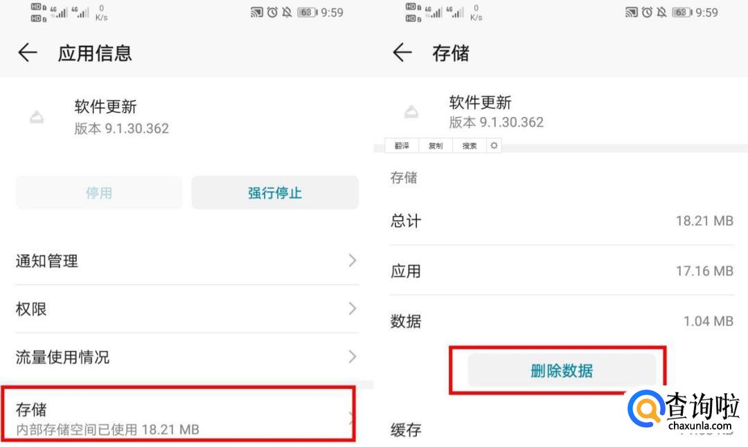 来到【应用管理】中后,在其中找到【软件更新】应用,选择这个功能并点击其中的【储存】选项,进入后点击【删除数据】按钮,然后再将手机重启一下,最后回到系统更新界面,点击【检查更新】,就可以收到系统更新通知了,更新完后就可以在拨号界面看到畅连通话功能了。