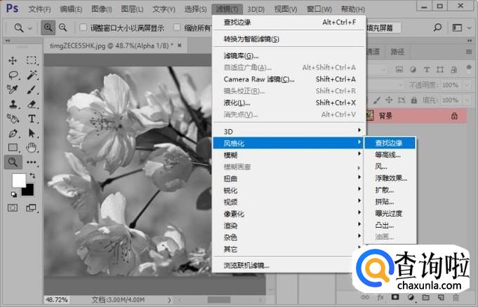 接着我们执行滤镜-风格化-查找边缘命令。