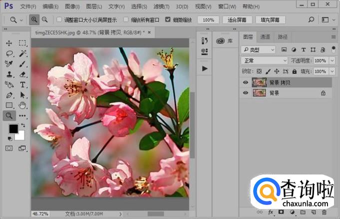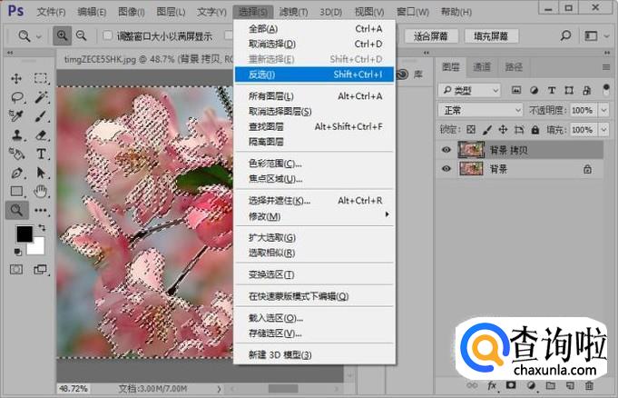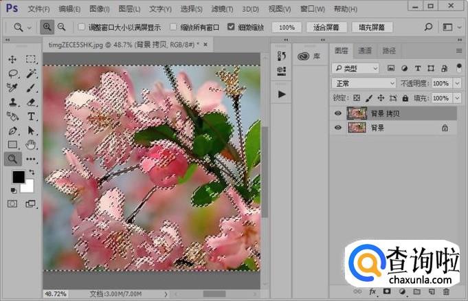 接着我们载入通道选区;然后选择图层面板,复制背景图层。