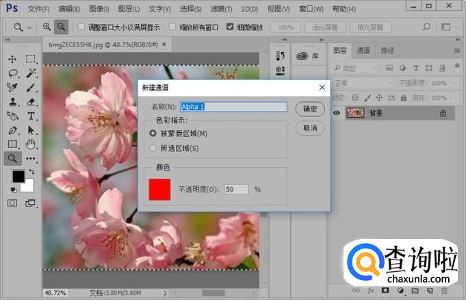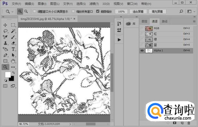 接着我们使用快捷键CTRL加a,全选整个画布并且拷贝选区内容;接下来我们新建一个通道,参数如图所示。