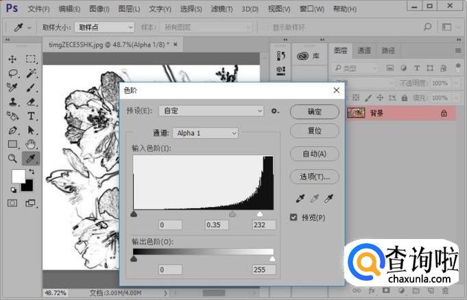 然后我们给通道添加色阶命令,参数如图所示。