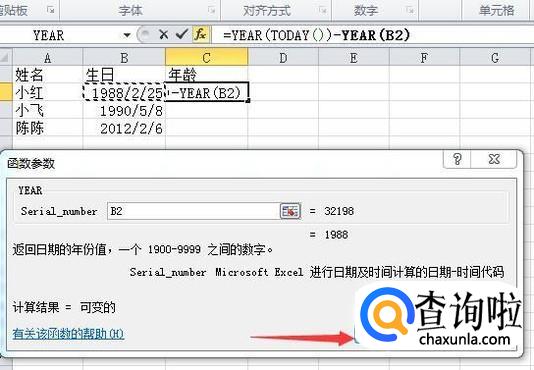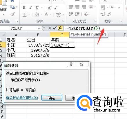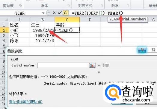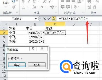 点击确定按钮,出来的是一个日期,按Ctrl+Shift+~键转换格式为数字,就显示为年龄了。