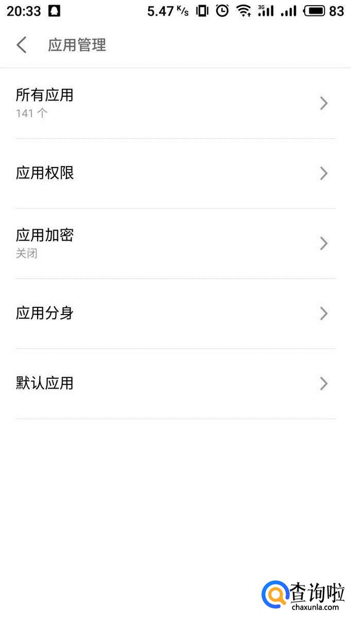 进入应用管理界面,在应用中蒂娜及“默认应用”