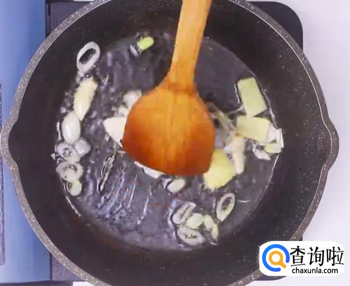 之后另起一锅热油,放入葱姜蒜爆香。