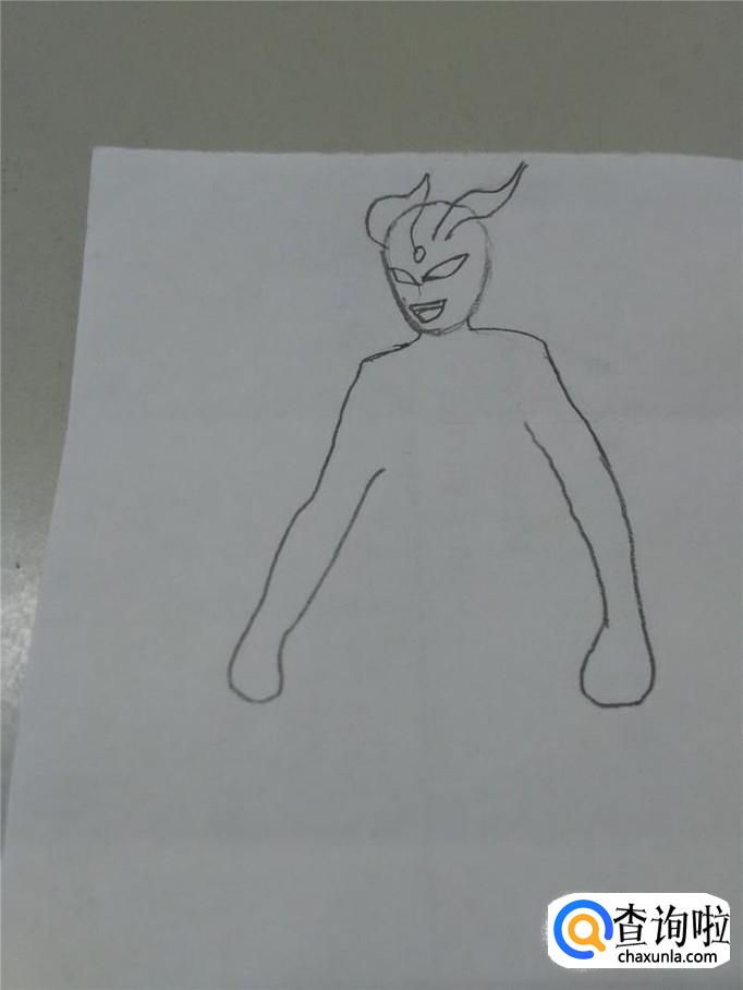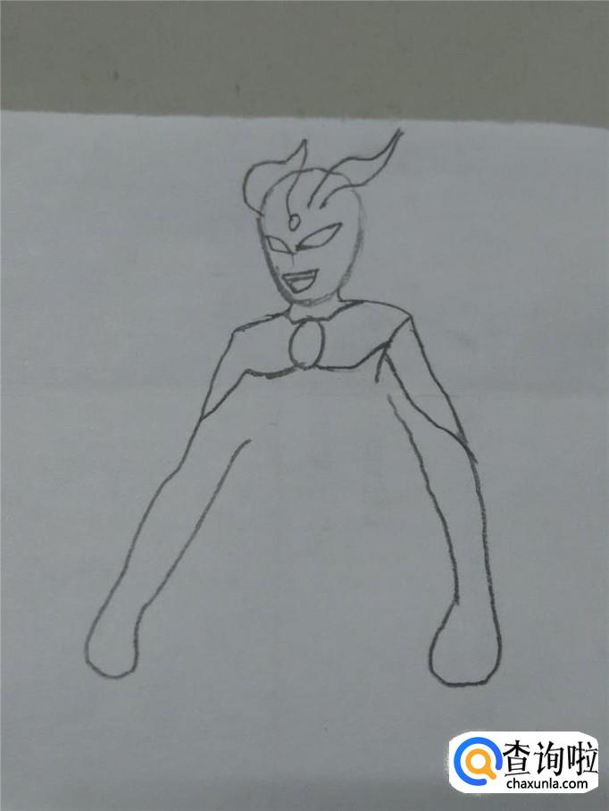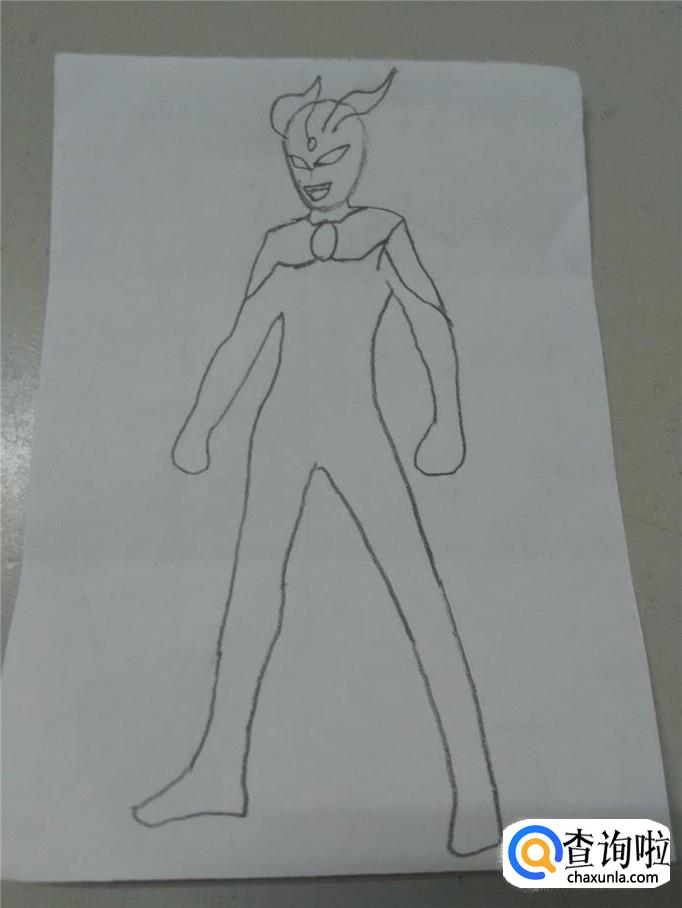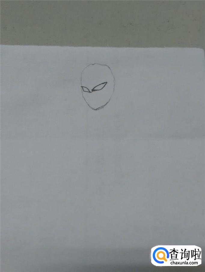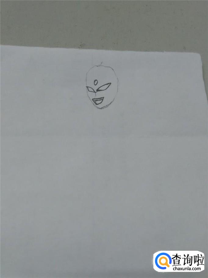 先用铅笔在纸上轻轻地画一个鸡蛋的形状,表示奥特曼的头。