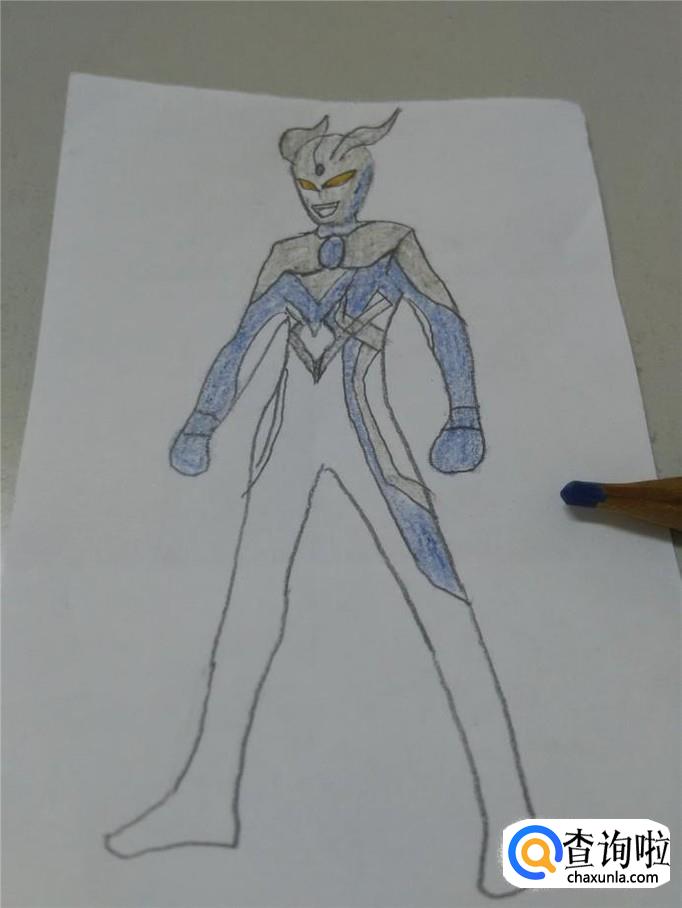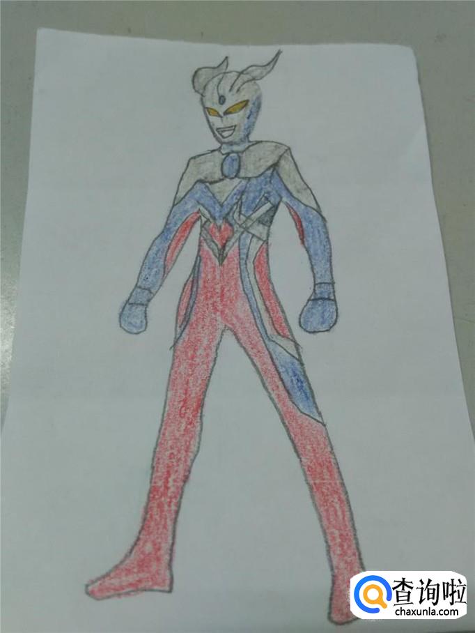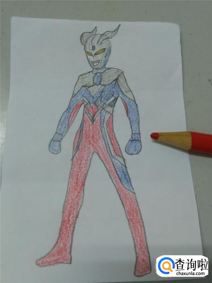身上其他的地方,用红笔涂成红色,高级赛罗奥特曼就画完了。