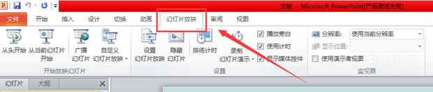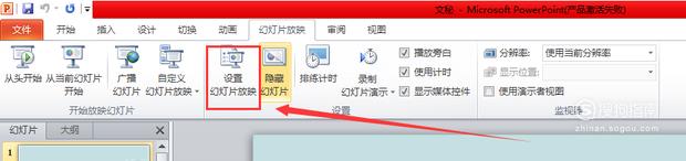 在菜单栏选项卡里点击“幻灯片放映”,再下拉菜单里点选“设置放映方式”。
