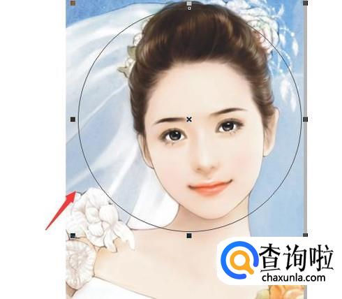选择椭圆形选项我们按下Ctrl键,在人物的图片上画出一个圆形,如图所示: