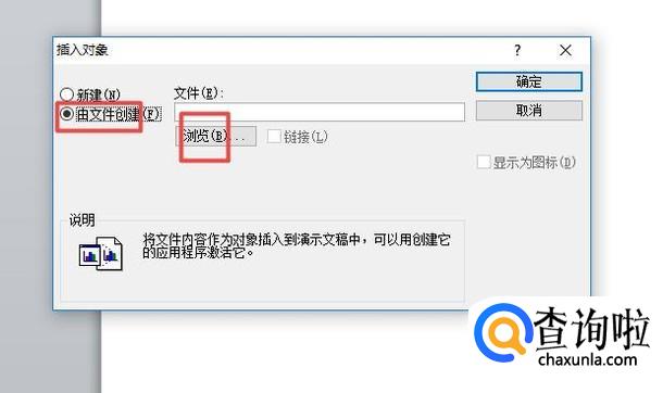 弹出的界面,我们点击由文件创建,然后点击浏览;