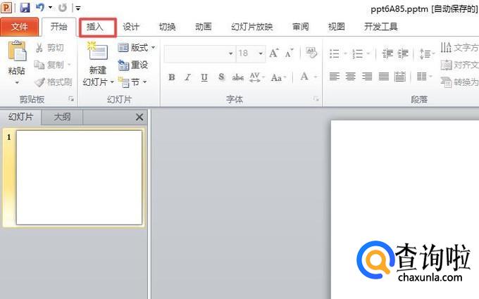首先,我们打开一个ppt,然后点击工具栏中的插入;