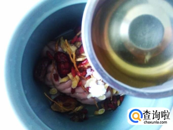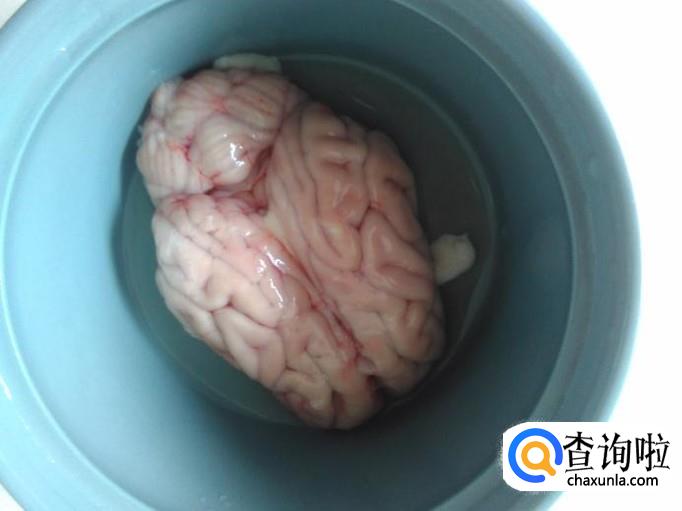 把挑干净的猪脑用水清洗干净放到炖盅。