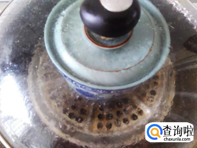 然后把药材捞上来放到炖盅,加适量的盐、油、1小勺黄酒。