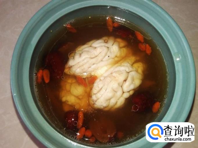 猪脑1个,当归、党参、黄芪、枸杞、红枣、黄酒适量。