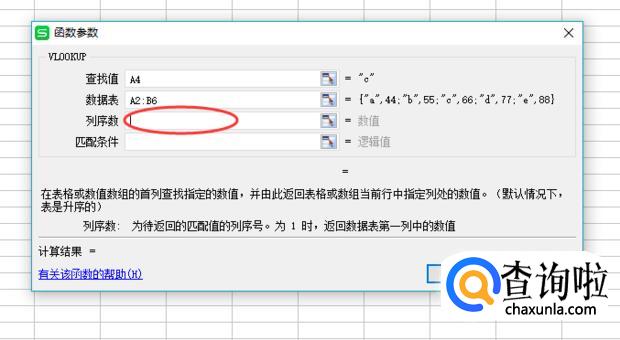 在列序数栏添加整个函数返回单元格所在的列号,此处为2。