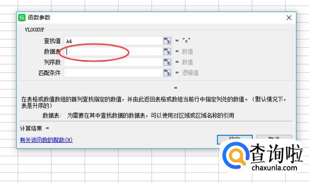 随后在数据表栏添加数据查找的范围,此处的查找范围为A2:B6。
