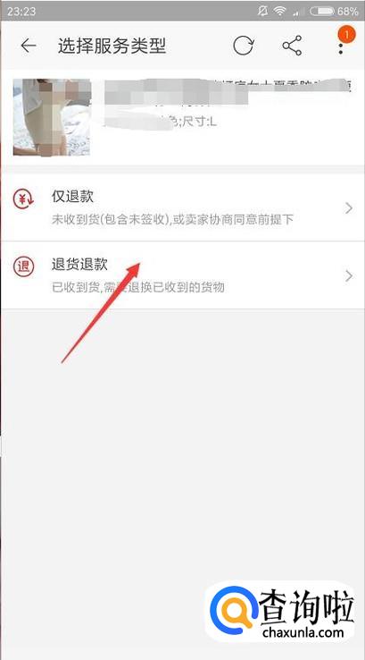 打开“申请售后”后按自己需求来选择仅退款或退货退款。