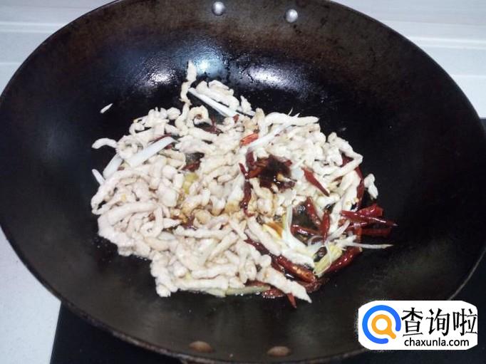 放入鸡丝翻炒,放入料酒,少许白糖,少许酱油,耗油。