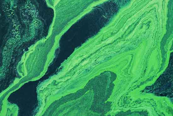 蓝藻分布十分广泛,遍及世界各地,但大多数(约75%)淡水产,少数海产;有些蓝藻可生活在60~85℃的温泉中;有些种类和菌、苔藓、蕨类和裸子植物共生;有些还可穿入钙质岩石或介壳中(如穿钙藻类)或土壤深层中(如土壤蓝藻)。