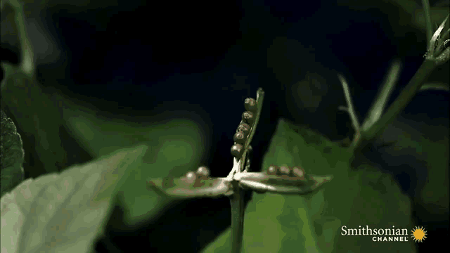 当果实成熟之后,稍微的风吹草动就会使得果皮从接缝处开裂,张力被瞬间释放使得果皮裂片向内卷起,种子便被“借力”弹出。