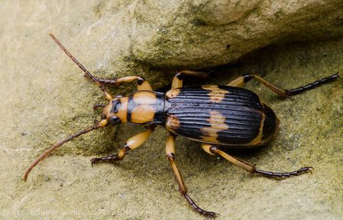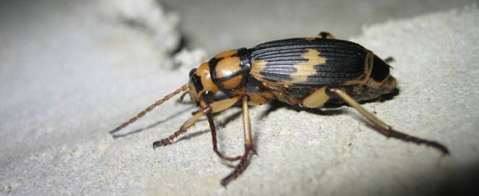 翻起一块石头,掀起一块瓦片,忽见一只隐藏其下的身带黄色斑纹的黑色甲虫慌慌张张四处逃命。你用手试图捕捉时,突然听到“嘟”的一声,一股烟雾从甲虫的身后喷向你的手指。瞬间,你的手指发黄,好像被香烟头烫了似的疼痛难忍。这个甲虫就是人们常说的“放屁虫”——屁步甲。