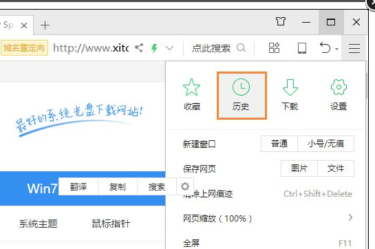 打开浏览器,点击菜单选项,点击“历史”,打开界面后就可以看到历史记录了。或者使用键盘“Ctrl+h”快捷热键,能迅速地找到浏览器的历史记录。