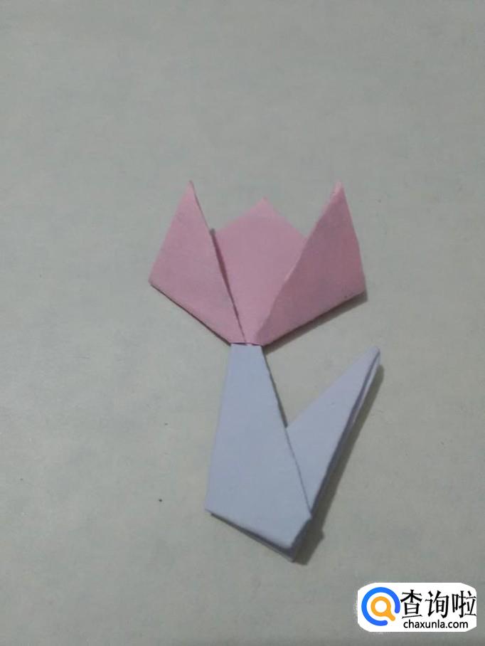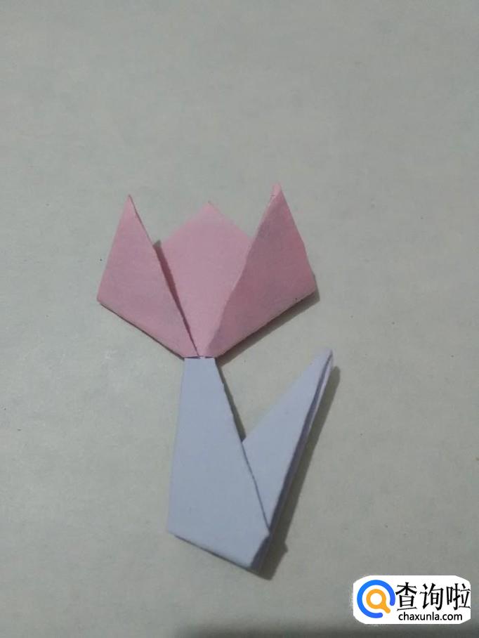将三角形左右两边的角往上折,折成三片郁金香的花瓣。