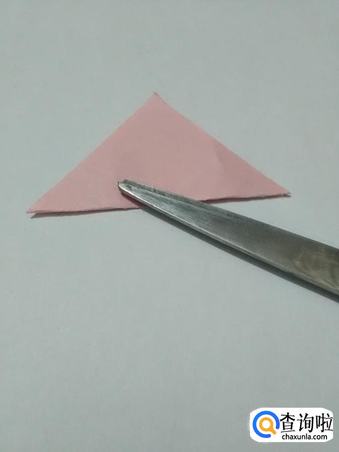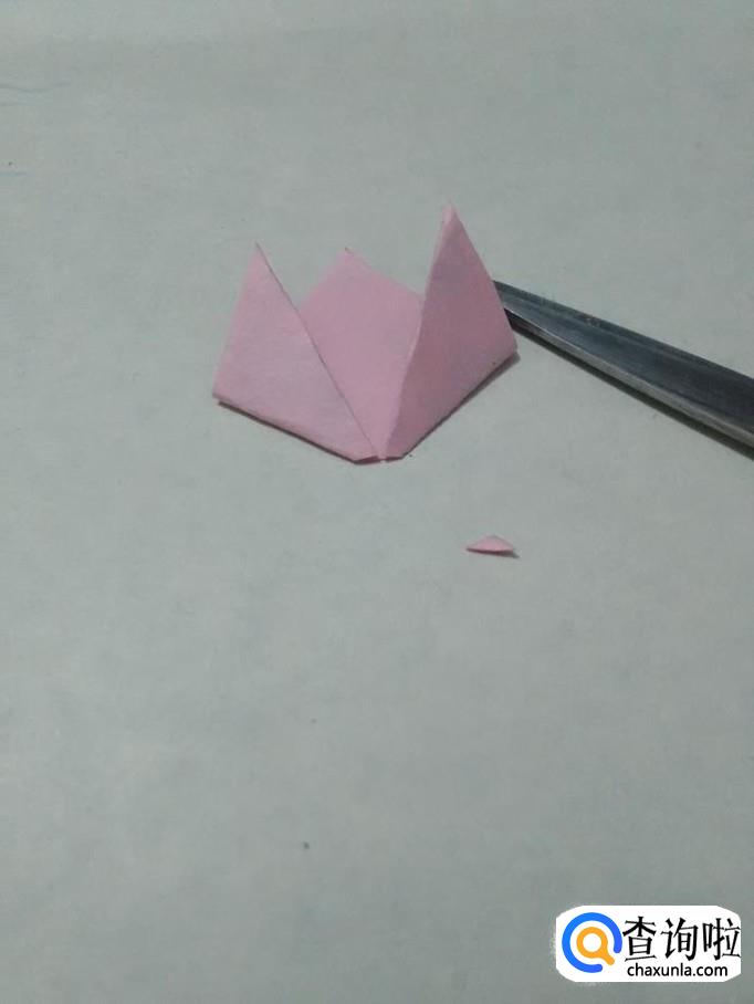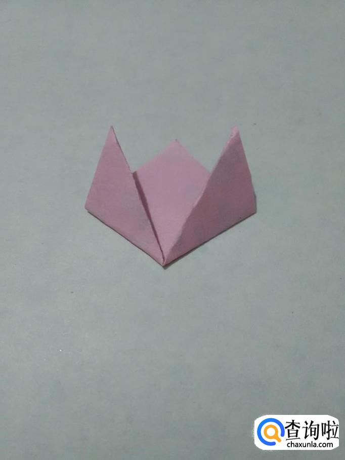 将粉色正方形的角往上对折。