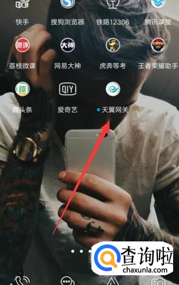打开手机,找到天翼网关,点击并进入,如图所示。