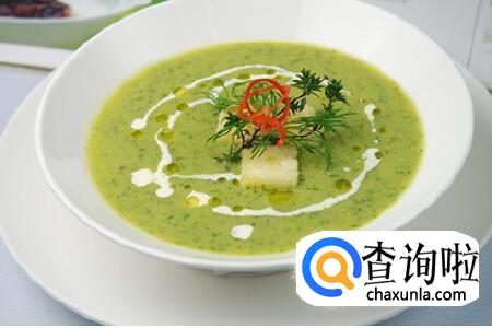豌豆是一种营养食品,不但含有大量的蛋白质,微量元素也十分丰富,维生素C含量是豆类之首,豌豆浓汤是一款西式菜点,佐餐配上法棍或薯饼,非常美味香浓。将洗好的豌豆和洋葱一起放入破壁机加水打成浓汁,过滤后再加入牛奶煮沸,最后撒少许盐和黑胡椒调味,装盘时可加入一些奶油点缀。