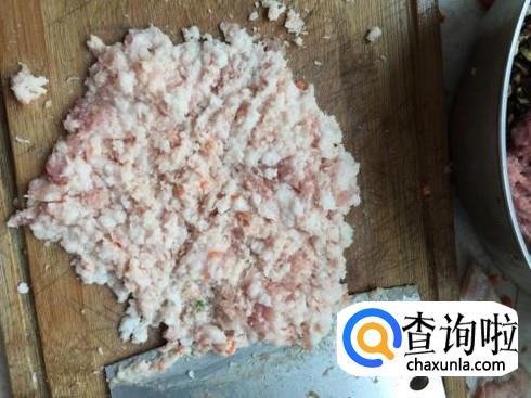 先将猪肉用温水清洗两遍,清洗之后把猪肉上的肥肉和瘦肉部分用刀分开,然后分别剁成肉沫,放在两个碗中。