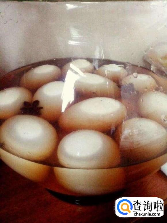 然后把煮好的鹅蛋过凉水,这样子的鹅蛋比较容易剥壳,然后把煮好的鹅蛋放入煮好的卤水里面腌制一段时间。