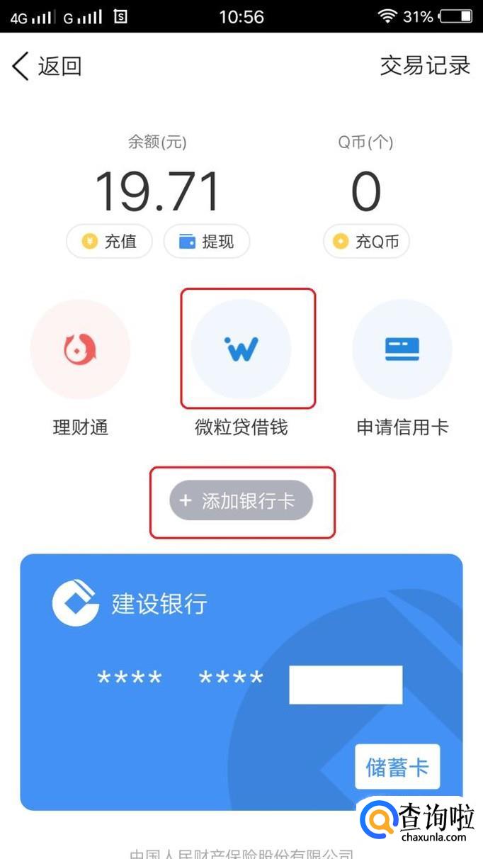 我们在账户内就可以看到“微粒贷”图标了,需要注意的是,想要贷款需要先点击“添加银行卡”,绑定一张个人名下的储蓄卡。