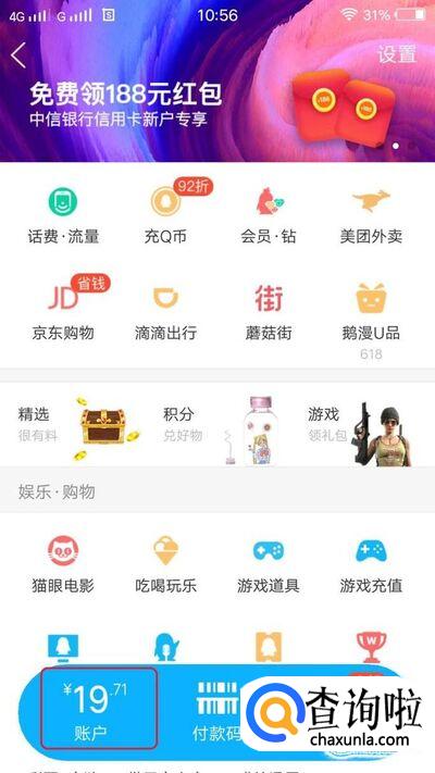 在QQ钱包界面,如图所示,点击“账户”按钮。