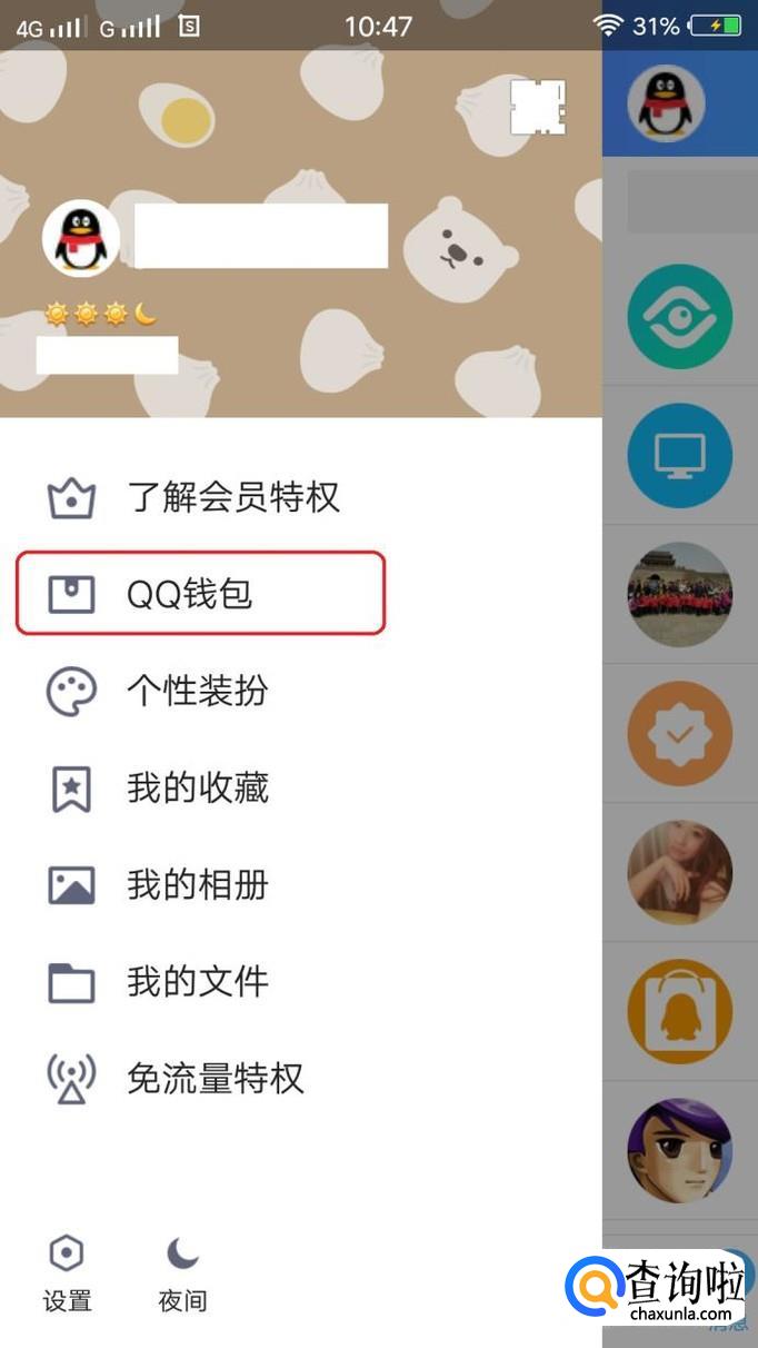 安装完成之后,打开QQ,点击界面左上角QQ图标,弹出如图所示菜单,我们点击“QQ钱包”。