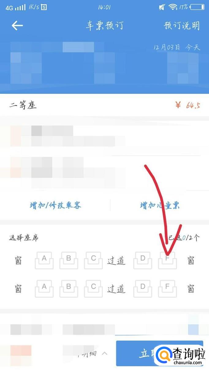 你会看到出现一个新的界面,直接点击靠窗的座位,如图1箭头所示。这样就可以买到靠窗的座位啦。