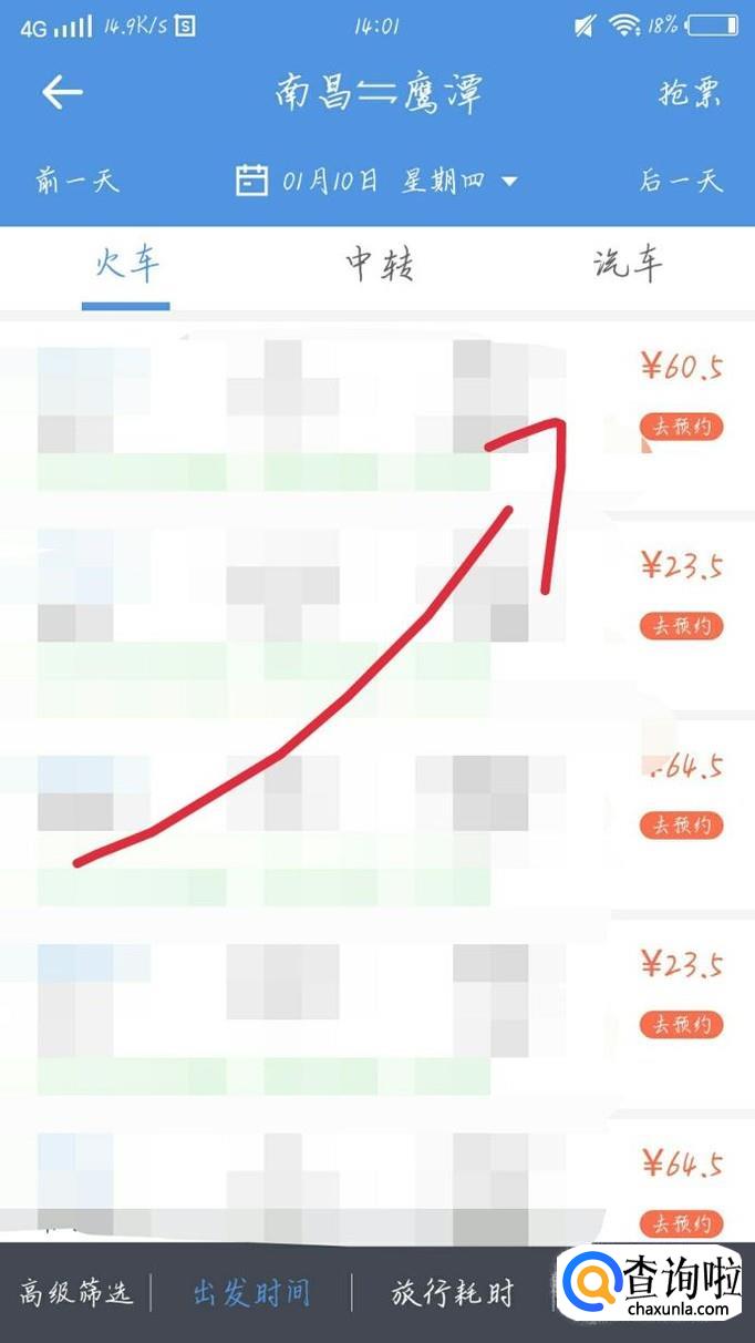 点击一个时间点,如图1箭头所示。你会看到出现一个新的界面,点击“预订”选项,如图2箭头所示。