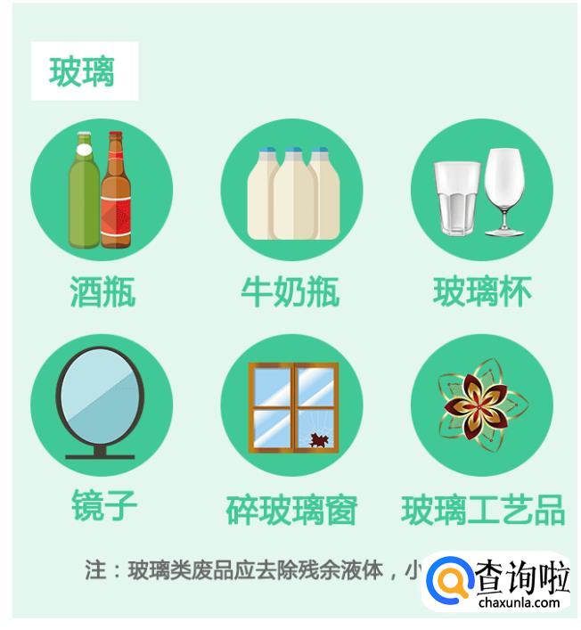 玻璃:主要包括各种玻璃瓶、碎玻璃片、镜子、暖瓶等。