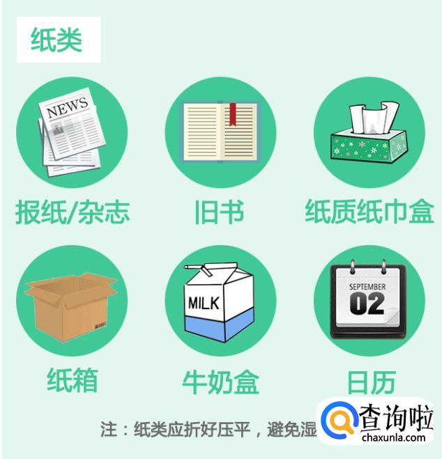 废纸:主要包括报纸、期刊、图书、各种包装纸等。但是,要注意纸巾和厕所纸由于水溶性太强不可回收。