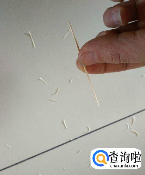 用刀把牙签削薄成三张纸的厚度。